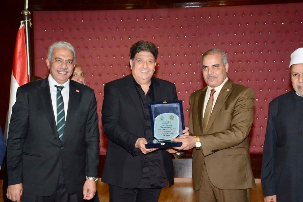 كَرم أ.د/ محمد حسين المحرصاوي رئيس جامعة الأزهر، الدكتور/ بسام فرشوخ رئيس الاتحاد العربي لتنمية الصادرات والصناعات الجلدية، على هامش المنتدى الدولي للطلاب بعنوان من أجل المُناخ (افريقيا في القلب) بحضور سعادة الوزير المفوض/ محمد خير مدير إدارة المنظمات والاتحادات العربية بجامعة الدول العربية وبمشاركة مجموعة من الوزراء والسفراء المعنيين.